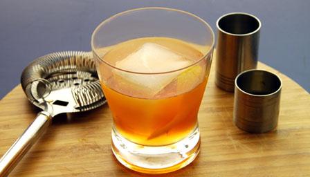 Stir until well combined, then strain the cocktail into a tumbler filled with ice. Garnish with the lemon twist.