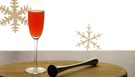 A champagne cocktail with sweet fruity notes.