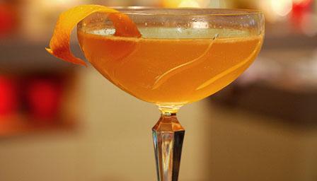 Strain the cocktail into a coupette glass, garnish with an orange twist and serve.