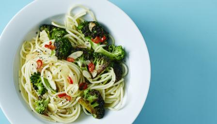 Drain the spaghetti and add to the broccoli pan, stir well to combine and serve.