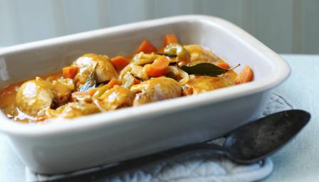 Heat the oil in a frying pan and fry the onion, celery and carrots for 4-5 minutes, or until softened. Add the chicken pieces and continue to cook for 2-3 minutes or until the have browned a little.