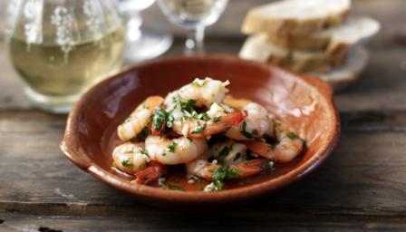 This simple recipe for prawns in a garlicky sauce makes a delicious addition to a tapas spread - just add lots of crusty bread.