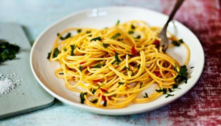 Sometimes simple food is the best and this 5 ingredient spaghetti dish wonderfully combines the flavours of garlic, chilli and fresh parsley to deliver a mouthwatering meal with minimum fuss.