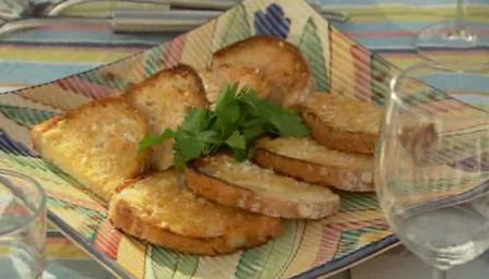 Toast the slices of bread on both sides until pale brown.